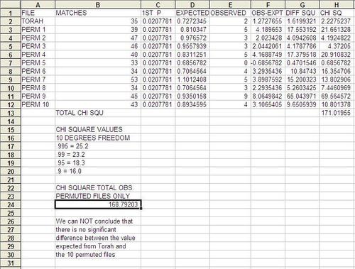 CHI SQUARES FOR PERMUTED TORAH TEXTS